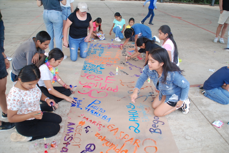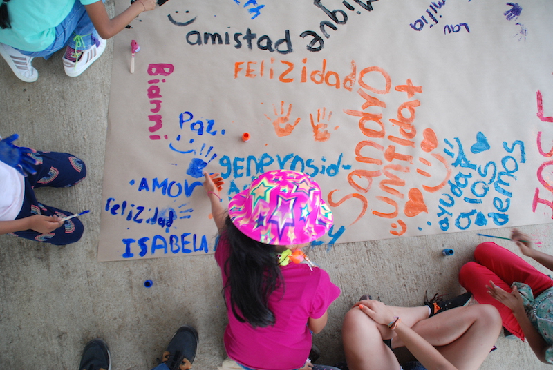 Después de diferentes juegos y actividades se realizó el “mural de la generosidad” donde se escribían nombres, frases y valores. Todos participaron y quedó muy bien.