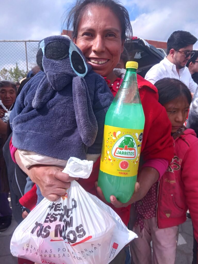 Entregamos 250 paquetes con pollo, refresco y guarnición en la comunidad de San Miguel Espejo.