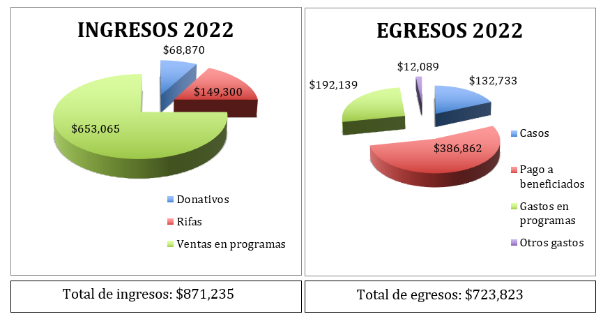 1. Procuración de fondos. Se logró procurar un total de $218,170. Lo que equivale a 14.26% más que lo logrado en 2021, esto fue debido, por una parte, a nuestra rifa anual, principal fuente de procuración, que fue todo un éxito ¡se vendieron todos los boletos!, por otra parte, abrimos los casos de ayuda al público que generosamente cooperó con nosotros y, además, recibimos algunos donativos particulares.