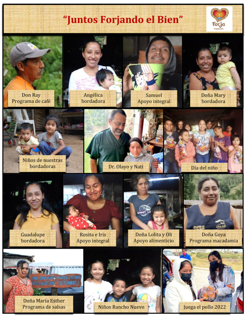 Si pudiéramos describir en una sola palabra el año 2022, diríamos que fue el año de la COMUNIDAD, una comunidad se fortalece por su verdadero espíritu de sacrificio y devoción por los demás, especialmente, por los más débiles y necesitados; entre otras cosas, en comunidad apoyamos a Rosita, madre soltera y en situación de extrema pobreza, en todo su proceso de embarazo, parto y maternidad, ¡nos llenamos de alegría! cuando nació su bebita, Iris Lucero; fortalecimos nuestra comunidad de bordadoras e integramos a más mujeres, hacen un trabajo extraordinario con sus manos mágicas, a la vez que mejoran su calidad de vida y se crea el tan anhelado tejido social; gestionamos, que el BANCO DE ALIMENTOS CÁRITAS PUEBLA, en coordinación con nuestro querido párroco de Chicontla, P. Adrián Pérez, proporcione 300 despensas quincenales para familias de cuatro comunidades; realizamos con éxito dos operaciones y apoyamos a diversas personas con medicinas y alimentación; lanzamos, también, un nuevo programa de desarrollo sustentable, nuez de macadamia, en la comunidad de Rancho Nuevo para apoyar a más familias; llevamos a cabo jornadas dentales en colaboración con la UNIVERSIDAD DE ORIENTE PUEBLA y FUNDACIÓN TAMARIZ OROPEZA; finalmente ¡no podría faltar! nuestro caso navideño Juega el Pollo 2022, donde entregamos 120 “pollo paquetes” justo el 24 de diciembre.