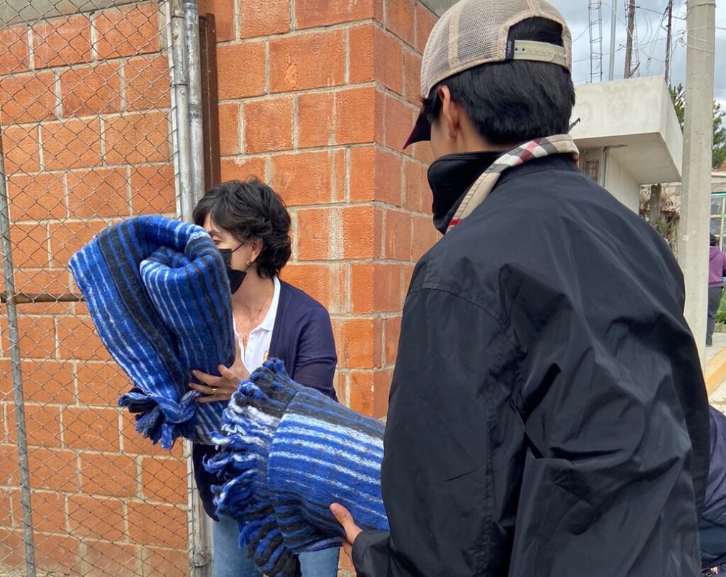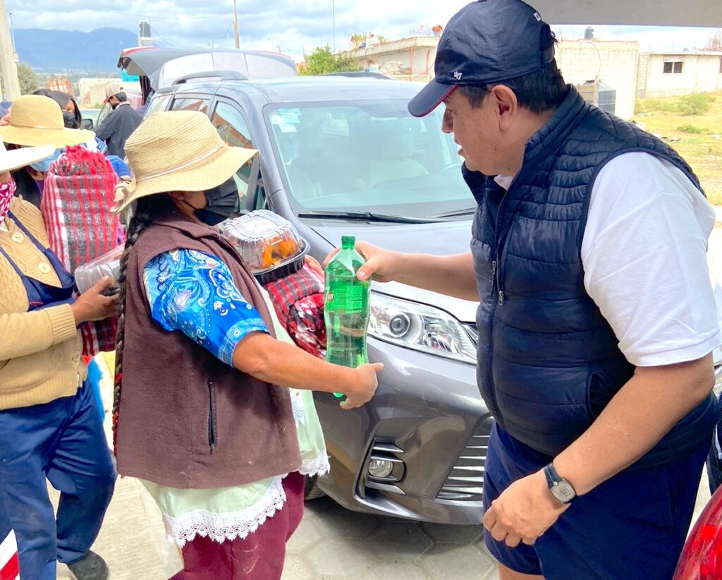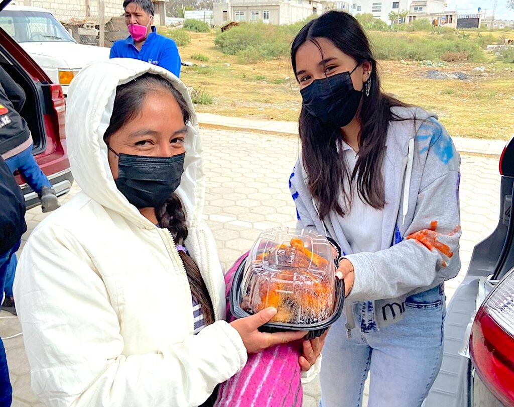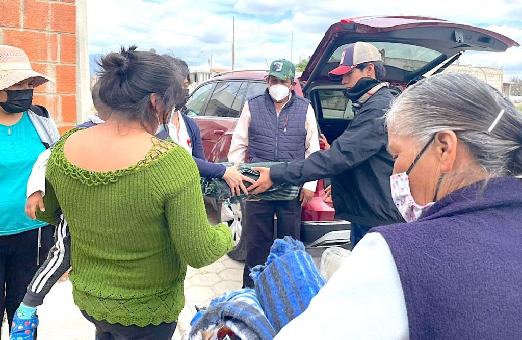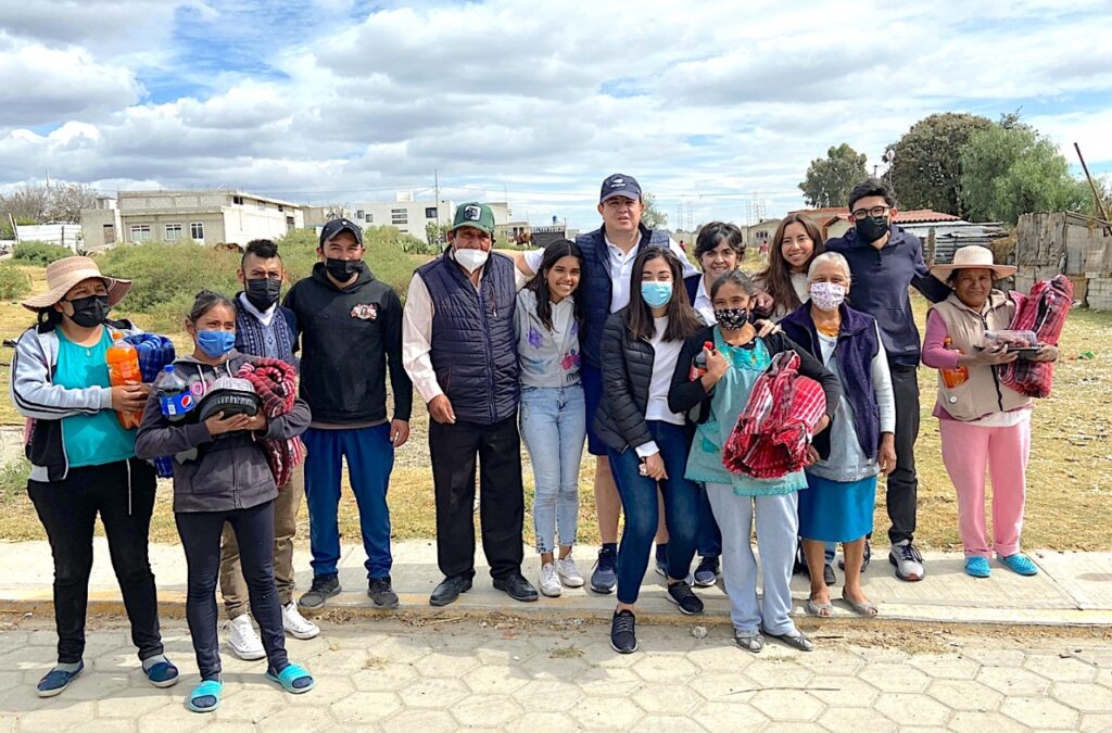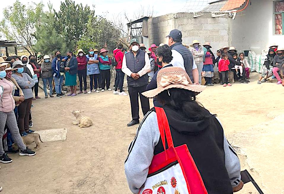🐔 Se entregaron 120 “pollo paquetes“, cada uno contenía: 1 pollo rostizado, refresco familiar y un buen sarape para los fríos de invierno.